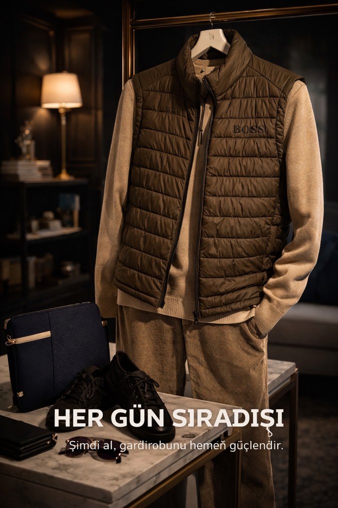 BOSS Haki Kapitone Erkek Yelek Rafine Şıklık ve Maksimum Konfor