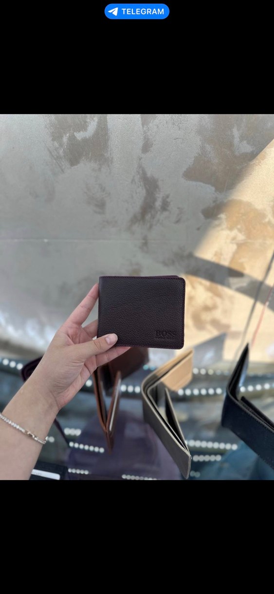 Boss markalı, iş ve gündelik sokak tarzına uygun, desensiz koyu kahverengi erkek cüzdanı.