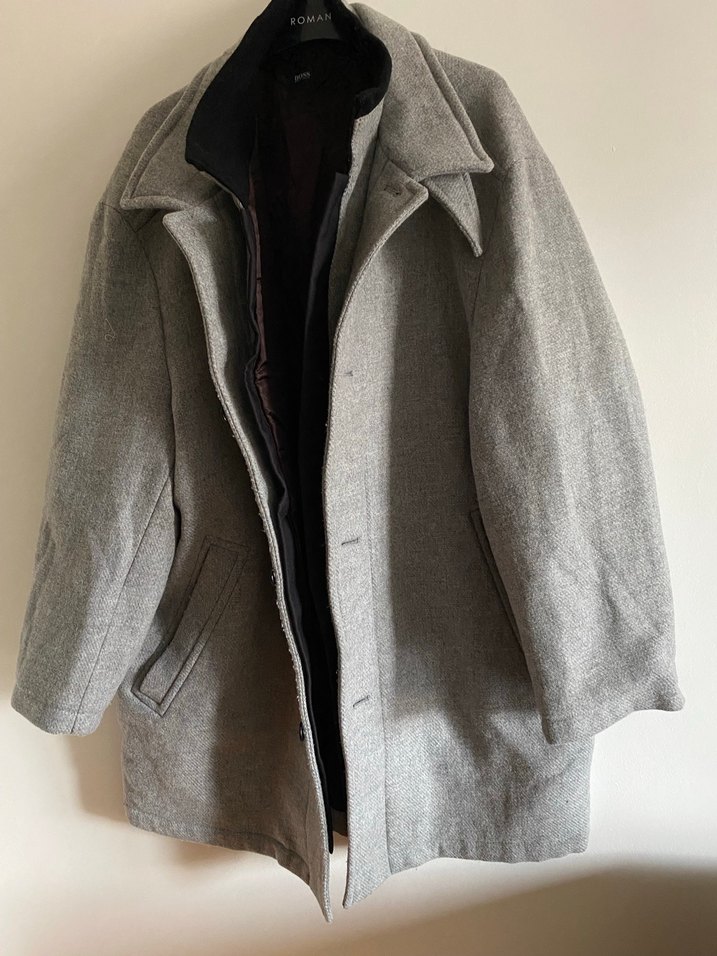 Boss marka Erkek Gri Düğmeli Keten Kaban