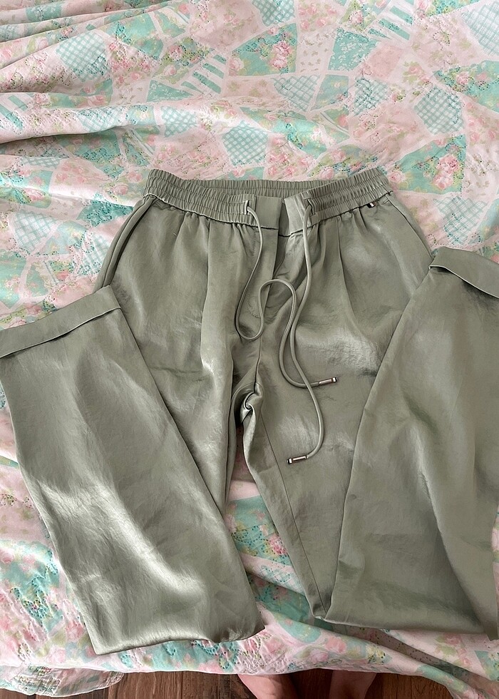 ipek kumas mint yesili rengi sonda goruldugu gibi s beden ama beli lastikli m bedene de oluyor