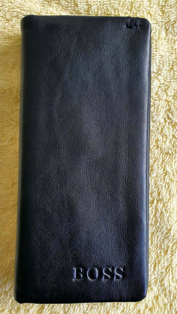 BOSS erkek cüzdanı siyah renkte, düz yüzeyli ve çağdaş tarzda klasik şıklığı yansıtır.