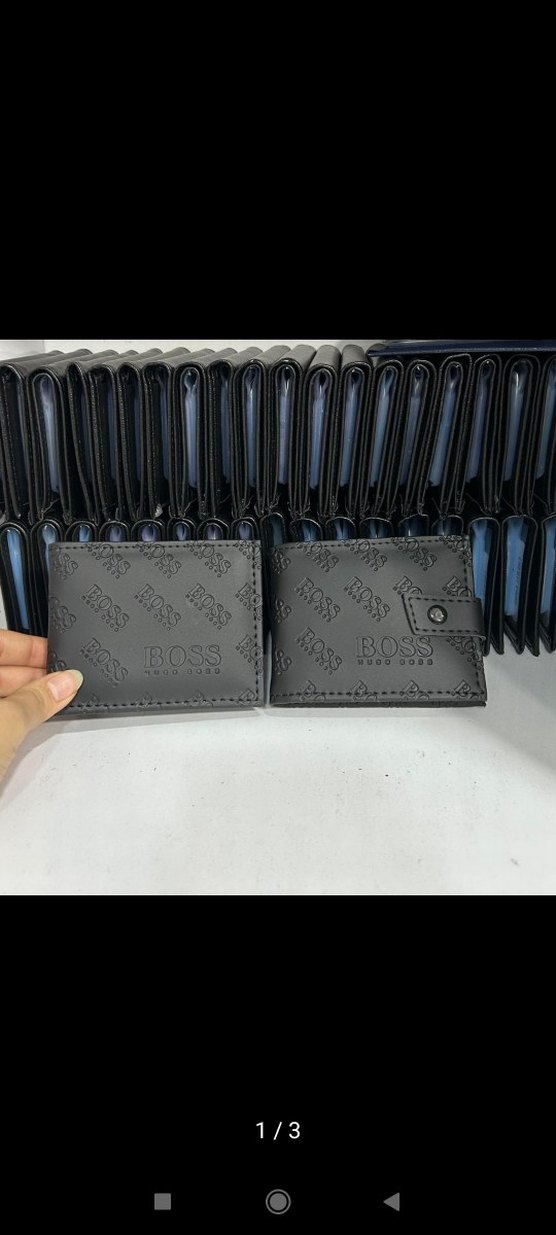 Baskılı BOSS logosu ve düğmeli kapaklı siyah erkek cüzdanı. Sokak stili ve iş tarzına uygun.