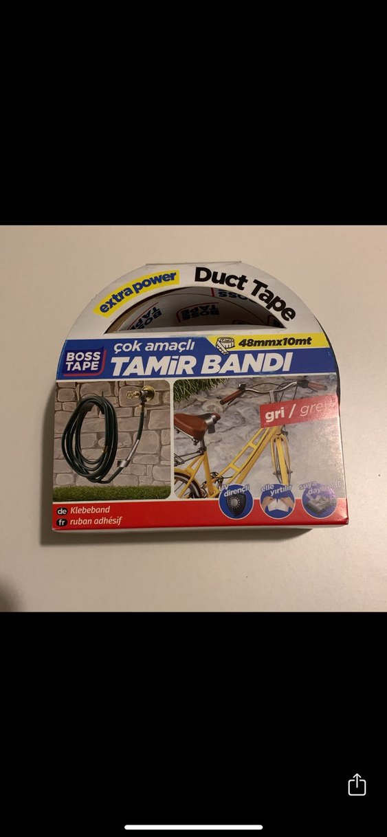 Boss Tape çok amaçlı tamir bandı, gri ve altın renklerde, 48mm x 10mt ölçülerinde. Güçlü yapışkanlığıyla çeşitli tamir işlerinde kullanılır. ️