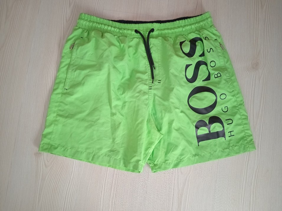 BOSS marka, bel detaylı, bol kesim ve büyük baskılı logo ile dikkat çeken yeşil mini erkek yüzme şortu. Canlı renkli ve rahat bir modeldir.