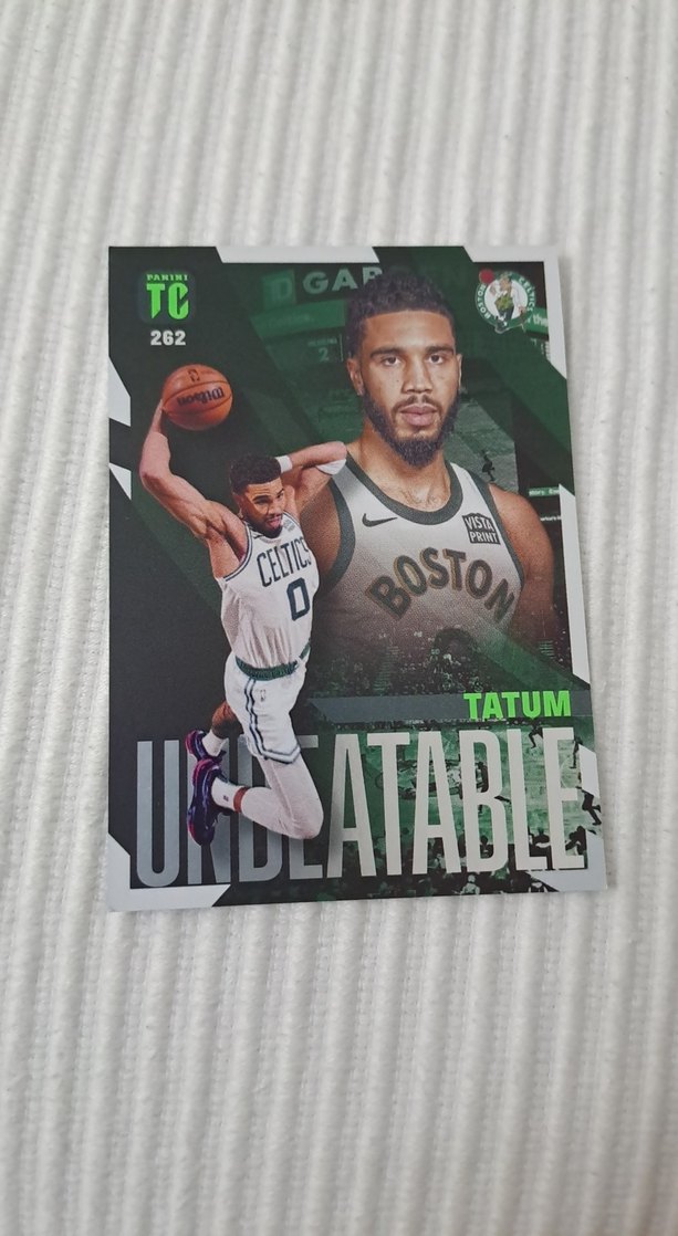 Jayson Tatum'ın Boston Celtics formasıyla yer aldığı basketbol kartı, koyu ve yeşil tonlarla dikkat çekiyor. Kartta 262 ve TC numaraları bulunuyor.