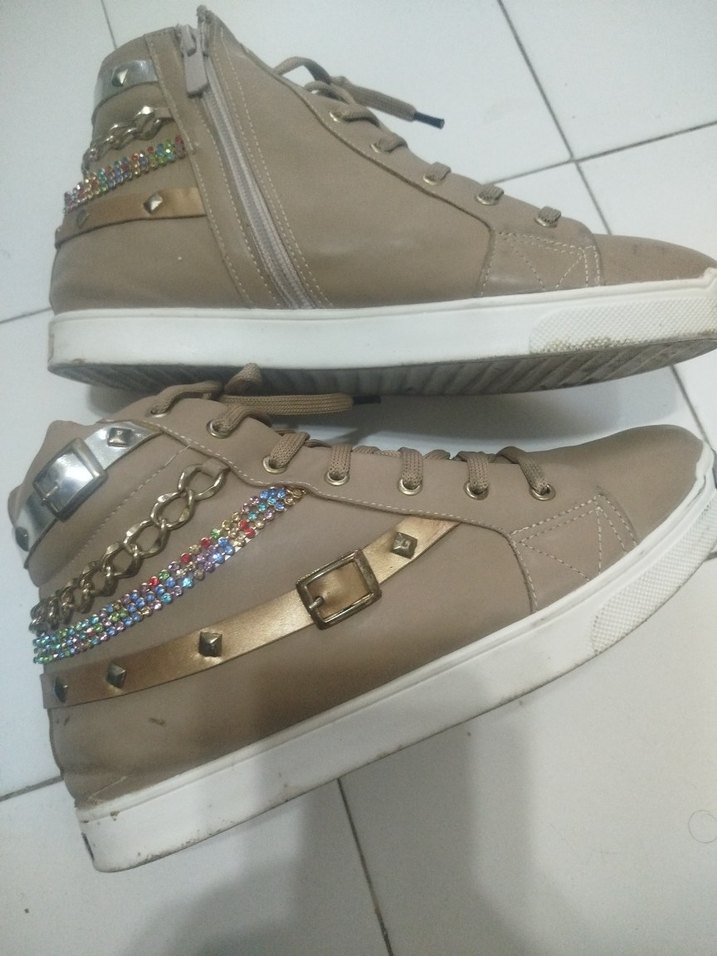 Ürün kızıma ait çok fazla kullanılmadı fakat beklemekten dolayı boyun iç ve boğaz kısmında dökülmeler meydana gelmiş.Suni deri oluşundan dolayı böyle dökülmeler oluşabiliyor.Elimden geldiğince resimlemeye çalıştım.Lütfen resimleri inceleyerek ve bilerek alım yapınız ya da sorularınız varsa cevap isteyiniz.Ayakkabının rengi Vizon rengidir.Renk skalasında Vizon rengi olmadığı için Camel rengi işaretledim.