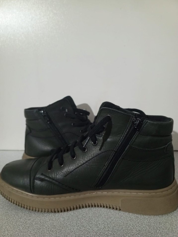 41 NUMARA KIŞLIK HAKİ YEŞİLİ HAKİKİ DERİ BOT. ÜRÜN GÖRSELDE GÖRÜLDÜĞÜ GİBİDİR. ÖN BURUN KISMINDA BOYASI ÇIKMIŞ, HAKİ BOYA İLE BOYANIRSA TERTEMİZ OLUR. İÇİ DIŞI TERTEMİZ. SADECE BİR SEZON GİYİLDİ. 4cm topuk, renk haki, taban sentetik, dış yüzey hakiki deri, iç meteryal tekstil dana derisinden yapılmış. soğuk havaya dayanıklı.