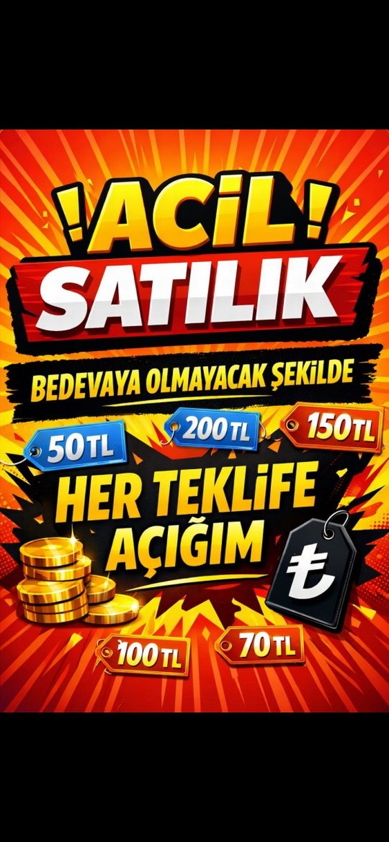 ı acil olarak 50 TL'den 1000 TL'ye kadar çeşitli fiyatlarla satılıktır. Her teklife açığız.