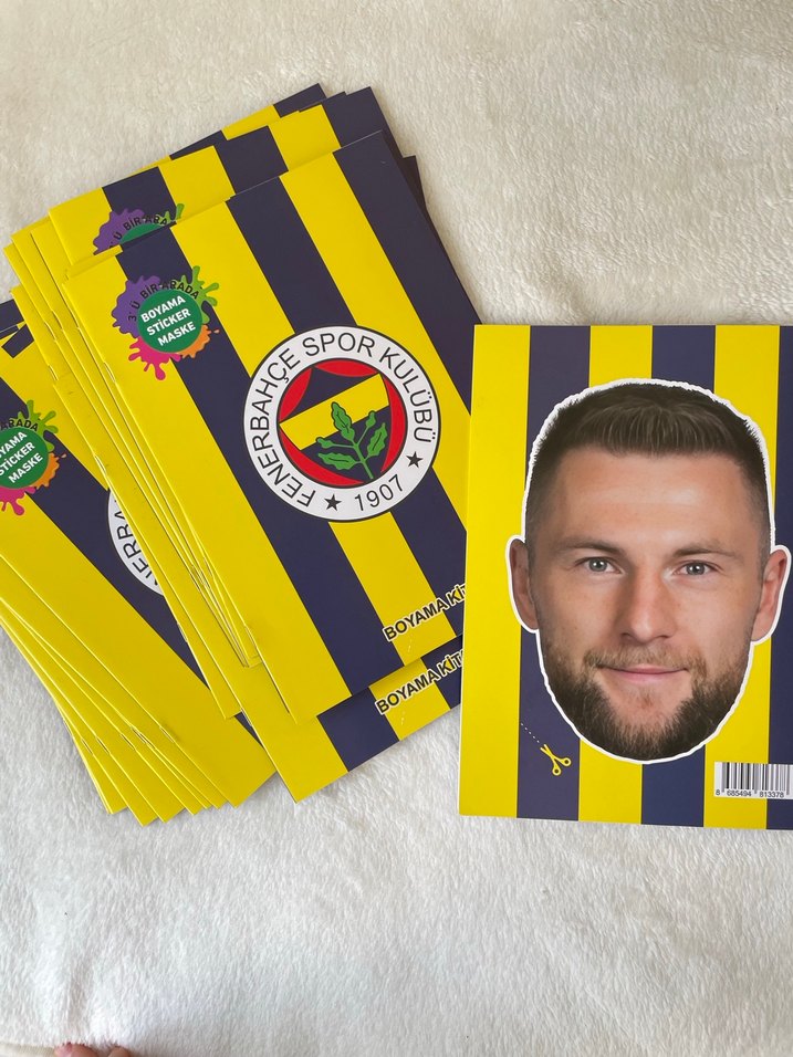Erkekler için sarı lacivert çizgili arka planda Fenerbahçe spor kulübü rozeti. Pop kültür ve athleisure tarzında, rock punk havası taşıyor. ⚽