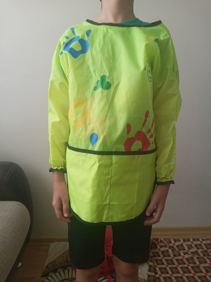 Renkli batik desenli, uzun kollu, elastik yakalı boyama önlüğü veya aktivitelerde kıyafet koruması sağlar.