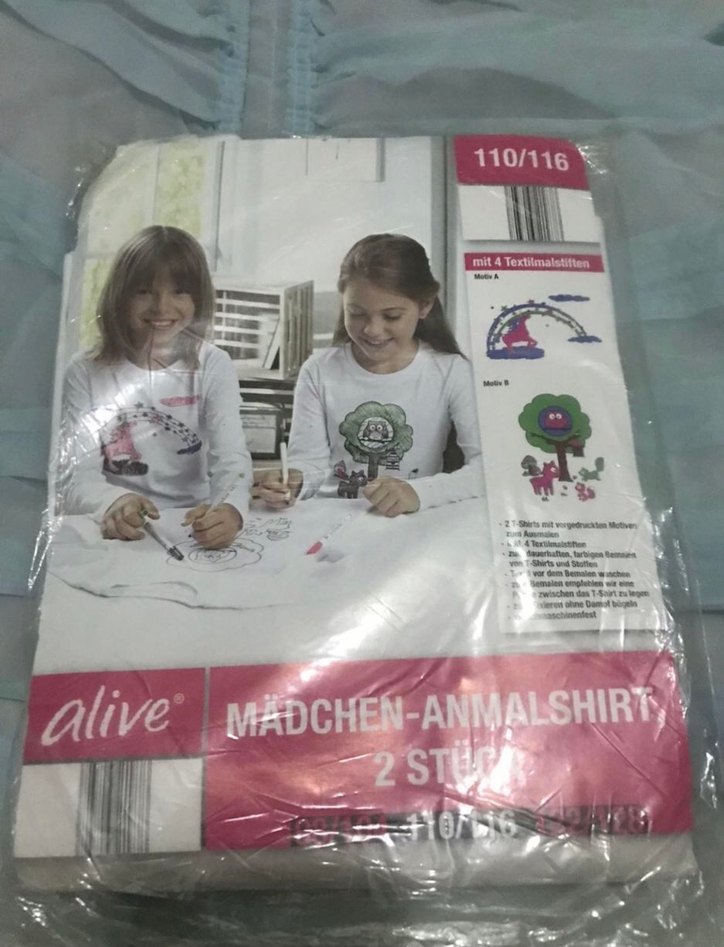 alive markalı, 110/116 beden, boyanabilir beyaz kız çocuk tshırt. 2'li set, yumuşak kumaş ve renkli hayvan desenleriyle. Ürün bilgileri son resimde mevcuttur