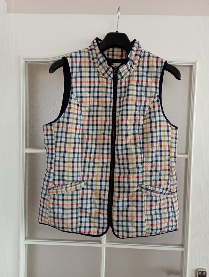 yakalı ve kolsuz olan bu yelek, açık renk çok renkli kare desenli ve normal kesimdir, gündelik rahat tarz için uygundur. defo vs yoktur