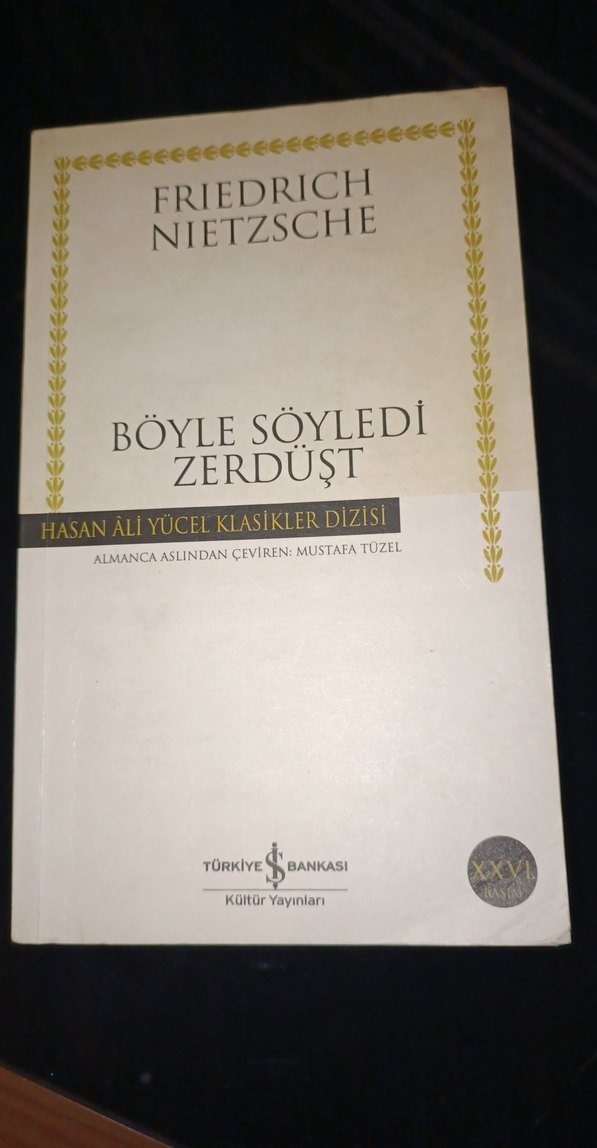 Friedrich Nietzsche'nin Almanca aslından Mustafa Tüzel tarafından çevrilen 'Böyle Söyledi Zerdüşt' kitabı, Hasan Ali Yücel Klasikler Dizisi'nden, Türkiye İş Bankası Kültür Yayınları'ndan.
