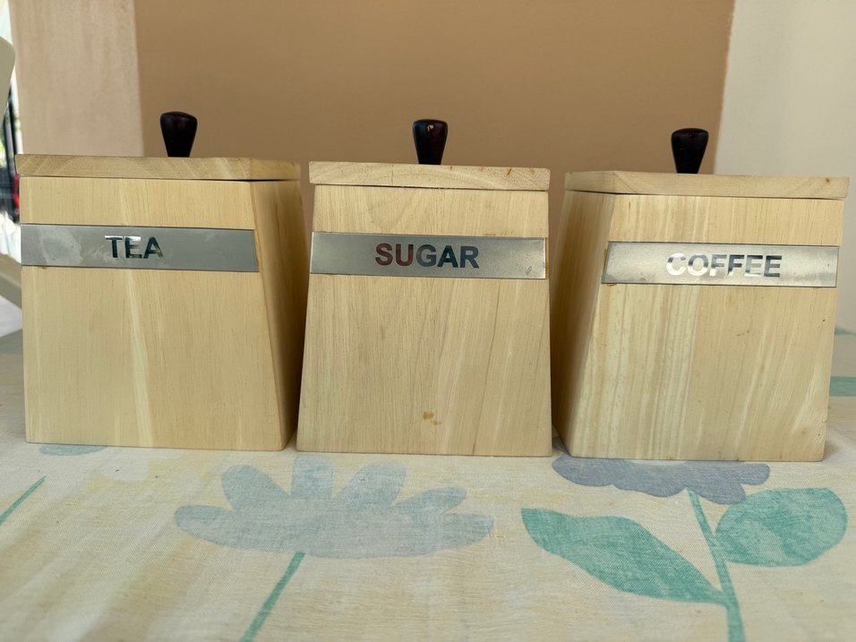 Boyner’den alındı, hiç kullanılmadı, dekoratif ahşap çay kahve şeker kabı, iç hacmi yaklaşık 1000 ml dir.