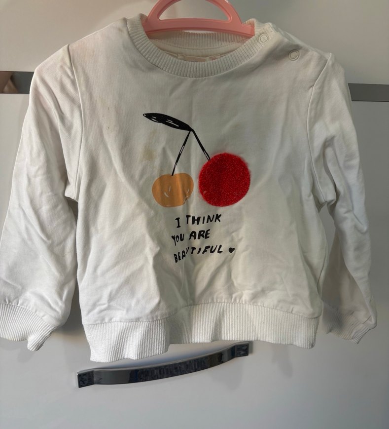 Boyner sweatshirt 9-12 ay yumuşacık ve rahat. Herhangı bır sorunu yok önunde belırsız bıraz leke var . Muhtemelen çıkacaktır. Dolapta durduğu ıcın kırışık