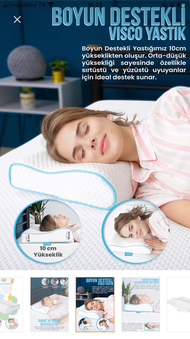 Beyaz renkte, 10 cm yüksekliğinde boyun destekli hamile ve emzirme yastığıdır. Orta-düşük yükseklik, sırtüstü ve yüzüstü uyuyanlara ideal destek sağlar. ️