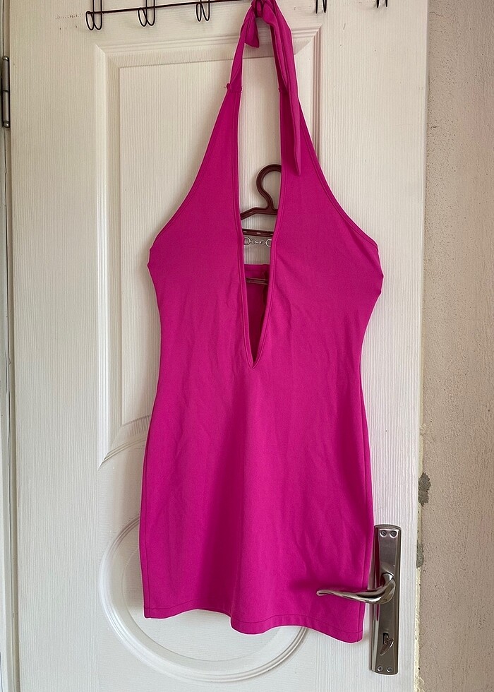 Bir kere giyildi hiçbir kusuru yok boyundan bağlamalı elbise . Esnek kumaşa sahip m uyumlu