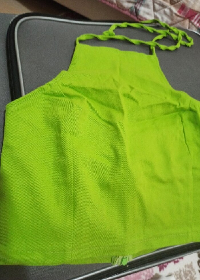 Boyundan bağlamalı bluz. Sırt dekoltesi vardır.