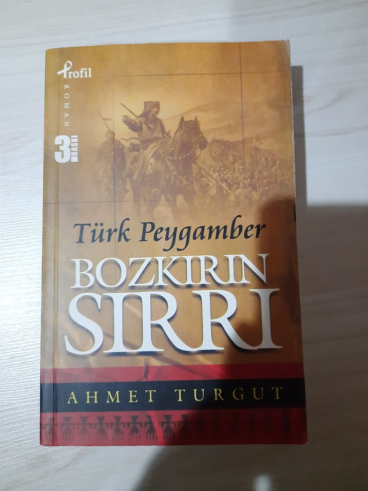 Ahmet Turgut'un Bozkırın Sırrı adlı romanı, savaş sahnesi ve atlı figür içeren kapağıyla tarihî temaları işler.