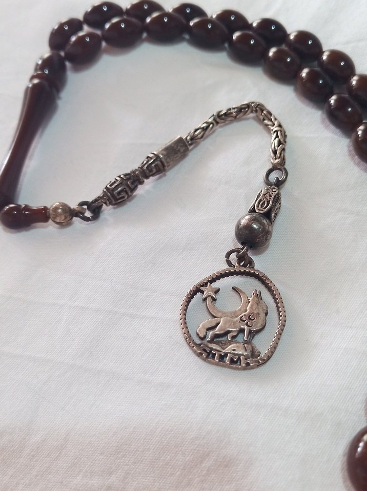 Çok özel bir parça 925 ayar gümüş kral zincir Bozkurt püsküllü 3 hilalli Türk yazılı erkek tesbih hediyeli ürün gerçek gümüştür nadide bir tesbih hatıra olduğu için kararmaları mevcuttur temizletilip gönderilir. Koyu kahverengi erkek tesbih, geleneksel tasarımda, aslan ve hilal figürlü gümüş renkli bir tılsım ile bohem tarzda.