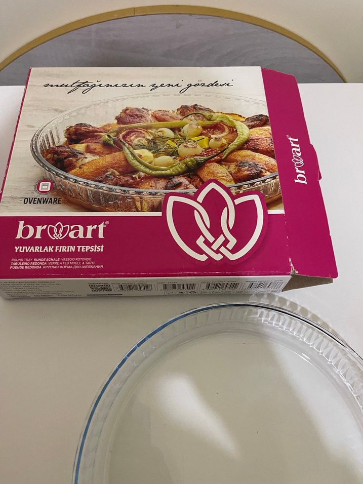 Braart markalı yuvarlak cam fırın tepsisi, fırında pişirme ve kızartma için uygundur. Şeffaf ve açık renkli yapısıyla eşit pişirme sağlar.
