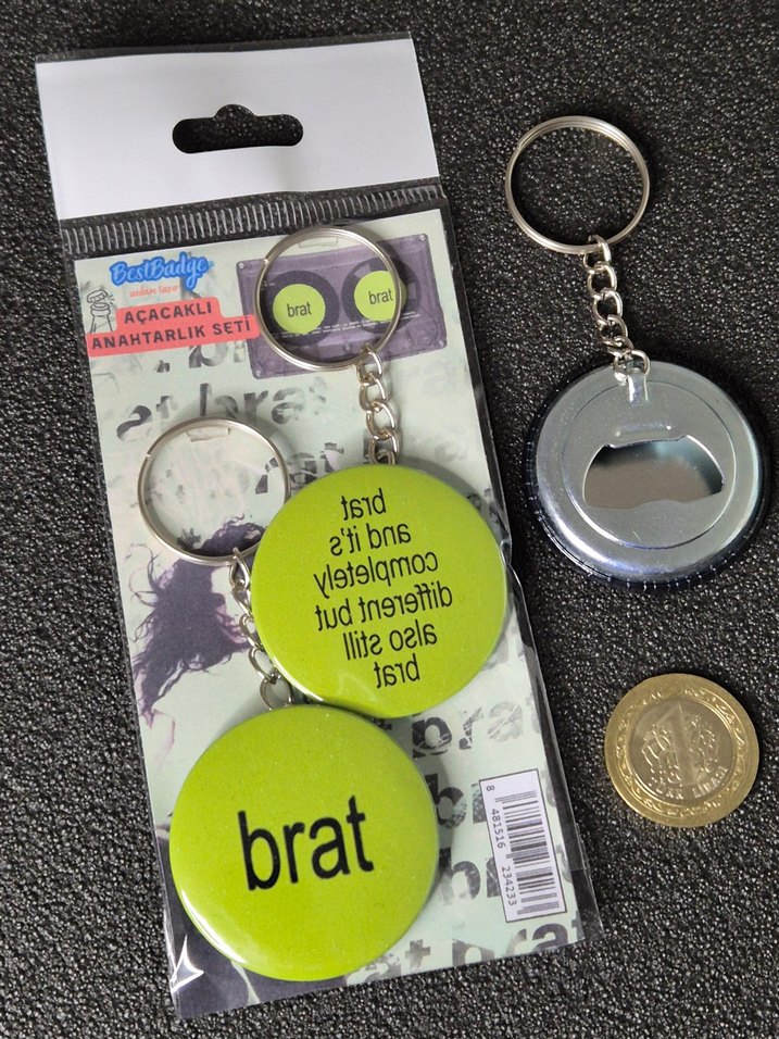 2'li CHARLI XCX BRAT albüm içerikli, arka yönleri şişe kapağı açacaklı metal anahtarlık seti. Çapları 4.4 cm olup kompakt boyutlara sahiptirler, görsellerde 1 Türk Lirası ile boyut kıyası yapabilirsiniz. Canlı ve kaliteli görsel baskı içerir. Sıfır paketinde gönderilmektedir. Stok sorunu olmayıp çoklu sipariş isteyebilirsiniz ✅ /// keywords: album music müzik şarkı parça plak brat 360, Club Classics, Sympathy Is a Knife, I Might Say Something Stu, Talk Talk, Von Dutch, Everything Is Romantic, Rewind, So I, Girl, So Confusing, Apple, B2B, Mean Girls, I Think About It All the Time, 365 İngiliz cd dvd playlist spotify deezer apple music yeşil charm