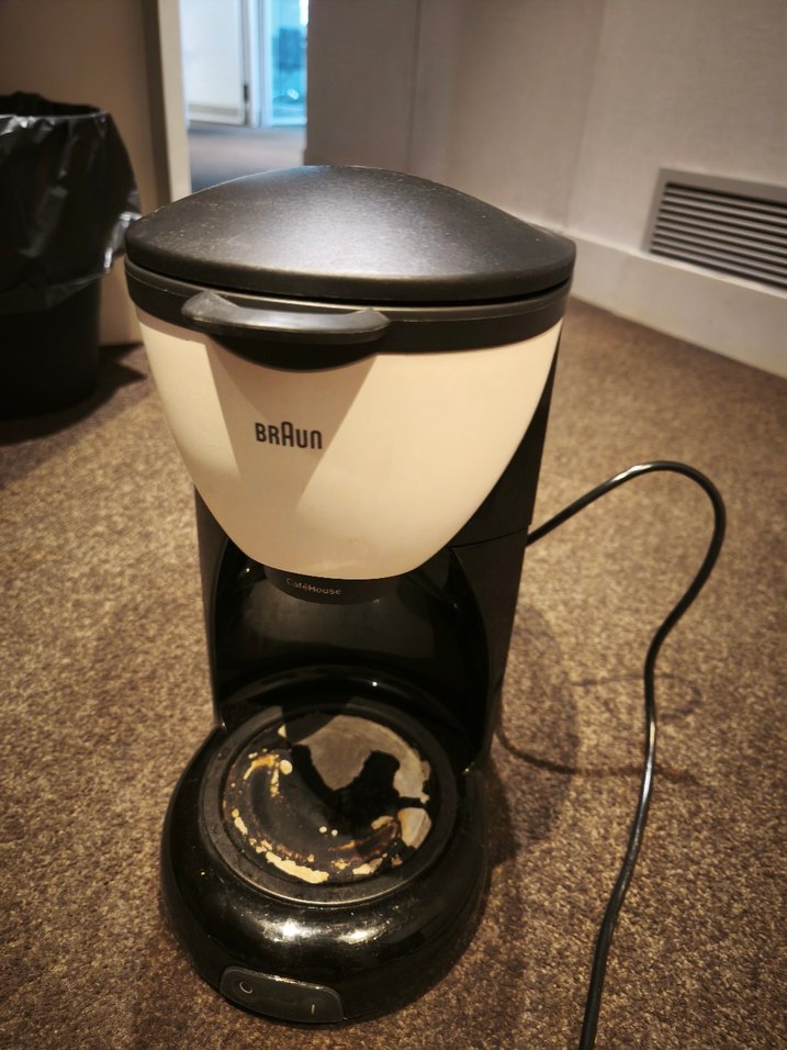 Braun marka beyaz ve koyu renkli klasik damlatmalı kahve makinesi, kompakt yapısıyla küçük alanlara uygundur. Cam sürahisi kırıldı için satıyorum