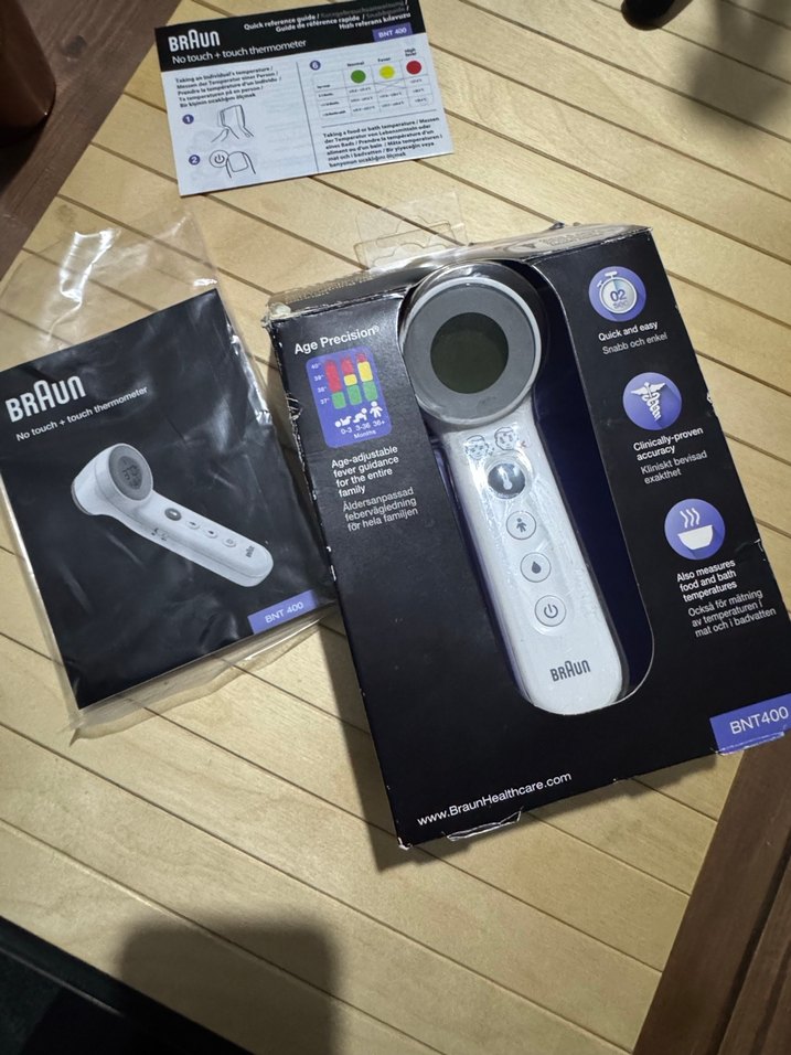 BNT400 Temassız Alından Ateş Ölçer - Beyaz Ürün kutusu ile durmaktadır herhangi bir sıkıntısı yoktur sıfırdan farksızdır. Uzun yıllardır kullanıyorduk başka bir ürün hediye geldiği için bu ürün boşa çıktı. Garantisi bitmiştir. Pilerini takmadan yollayacağım kargoda bu tarz ürünlerde sıkıntı çıkıyor. Braun Bnt400 Temassız + Alından Ateş Ölçer Devrim Niteliğinde Yeni Teknolojisiyle Klinik Olarak İspat Edilmiş, Kesin, Tutarlı Ve Hassas Ölçümler Yapar. Çift Teknoloji – Temassız Ve Alından Ölçüm. Temassız: Non-İnvazif Alından 2,5 Cm’ye Kadar. Temaslı: Kendi Kendine Yapılacak Ölçümlerde Tavsiye Edilir. Hızlı. 2 Saniyede Ölçüm. Her İki Modda Da Klinik Olarak Kanıtlanmış Doğruluk Yönlendirme Sistemi &Amp; Nişan Alma Işığı Yönlendirme Sistemi, Alından Çok Uzaklaştırdığınızda Size Uyarır. Nişan Alma Işığı, Kaşlarınız Arasındaki Doğru Bölgeden Ölçüm Yapmanızı Kolaylaştırır.