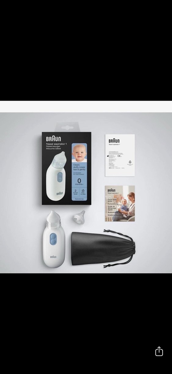 Braun burun aspiratörü, nazik ve etkili burun temizliği sağlar. Çeşitli uçlar ve taşıma çantası ile kullanışlıdır. Ürün sıfır hiç kullanılmadı Eylül2025 de alındı 2 yıl garantisi devam ediyor.