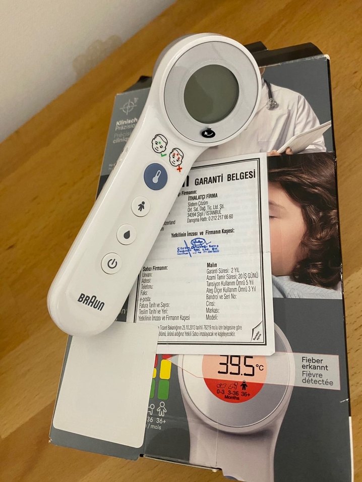 Braun dijital ateş ölçer, 39.5°C'ye kadar doğru ölçüm yapar. Garanti belgesi ile birlikte gelir, hafif ve kullanımı kolaydır. ️