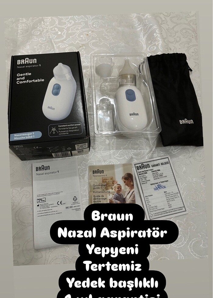 Braun Nazal Aspiratör Burun Temizleme Cihazı sessiz olarak çalsır kıs aylarında ve banyo yaptıkça burun temizliği yapmak hastalıkları önler Yedek başlıgı vardır Tertemizdir Bize farklı model hediye gelmişti fakat pek kullanamadık calısıyor sıkıntısı defosu yoktur En sondaki resimde görüldüğü gibi 4.000 tl ye yakın fiyalarla internet üzerinden satılmaktadır biz cok az kullandık hatta kullanılmamıs kadar temiz diyebilirim İhtiyaç fazlalıgından satıstadır bizde ürünlerimizi satıp eksiklerimizi alıyoruz Alana şimdiden hayırlı olsun