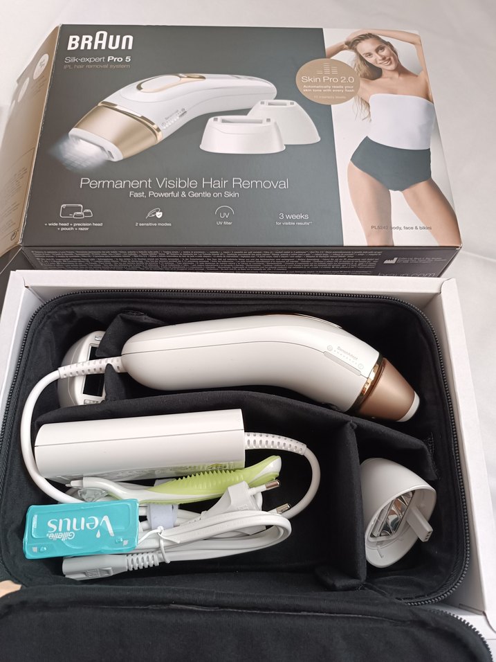 Braun Pro 5 lazer epilasyon cihazı, hızlı ve cilde nazik kalıcı görünür tüy azaltımı sağlar. Çoklu başlıklar ve şık beyaz tasarım içerir.