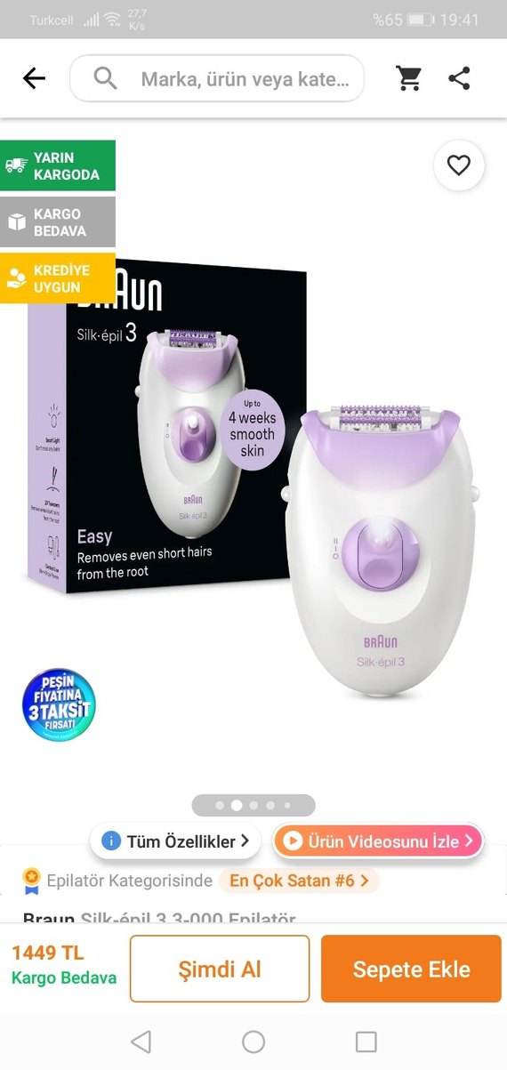 Braun Silk-épil 3 pastel beyaz epilatör, kısa tüyleri kökten alır ve 4 haftaya kadar pürüzsüz cilt sağlar. Kullanımı kolay ve hassas ciltlere uygun. ✨