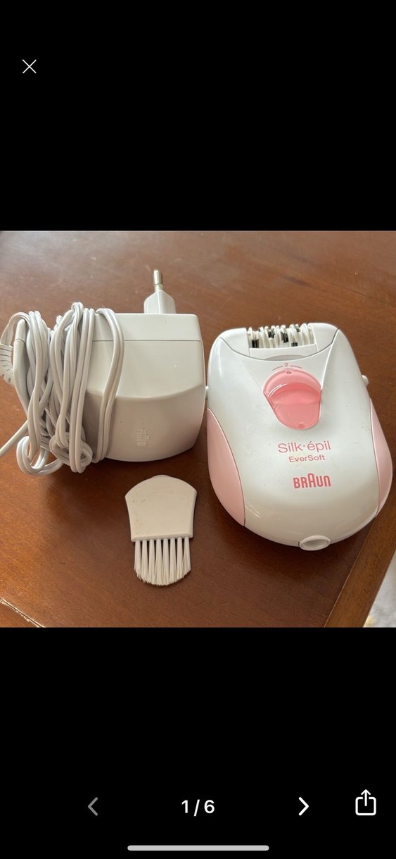 Braun Silk-épil EverSoft beyaz ve pastel pembe renklerde epilatör, güç adaptörü ve küçük temizlik fırçası ile birlikte gelir. Nazik tüy alma için tasarlanmıştır.