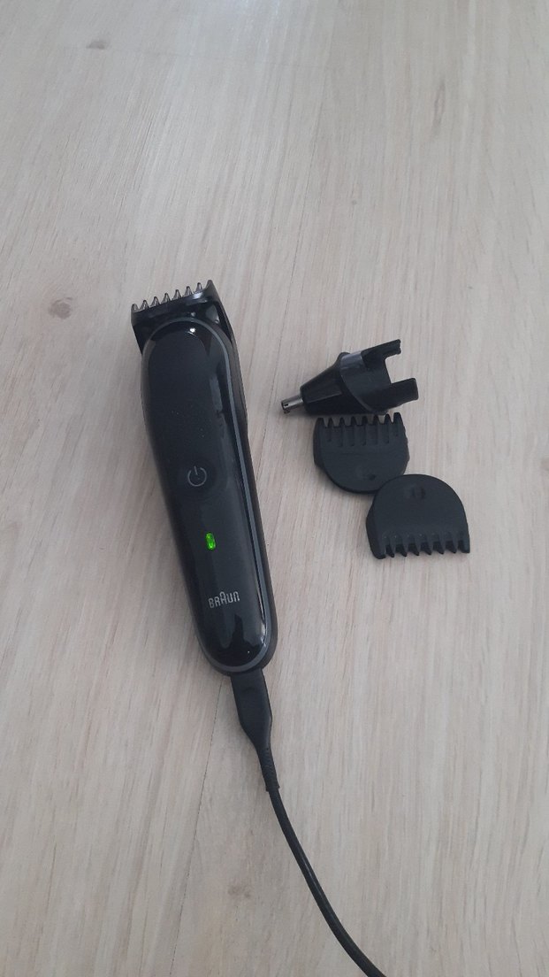 Braun siyah elektrikli tıraş makinesi, ayarlanabilir tarak başlıkları ve şarj kablosu ile birlikte. Hassas tıraş için uygundur. pili zayif sarz aliyor ama pil dolmuyor sanırım ister pil değiştir ister yedek parca