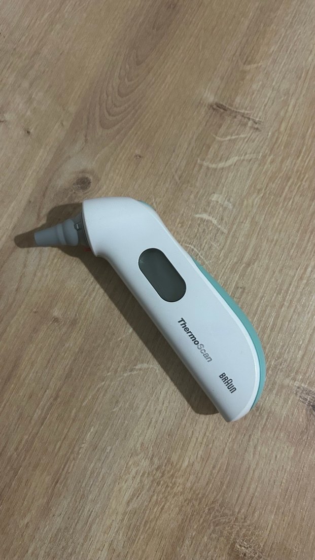 Braun ThermoScan kulak termometresi, pastel renkli gövde ve dijital ekran ile hızlı ve hassas ölçümler sunar. ️