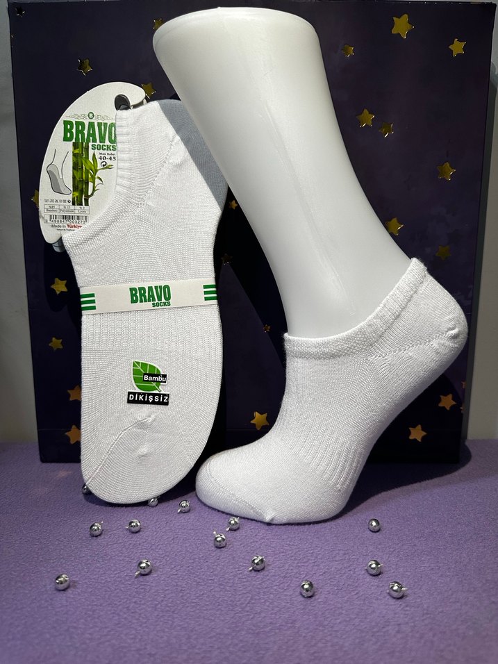 BRAVO markalı, beyaz renkli, kısa boy erkek çorabı. Rahatlık sağlayan yumuşak ve nefes alabilir kumaştan üretilmiştir. 4 çift fiyatıdır