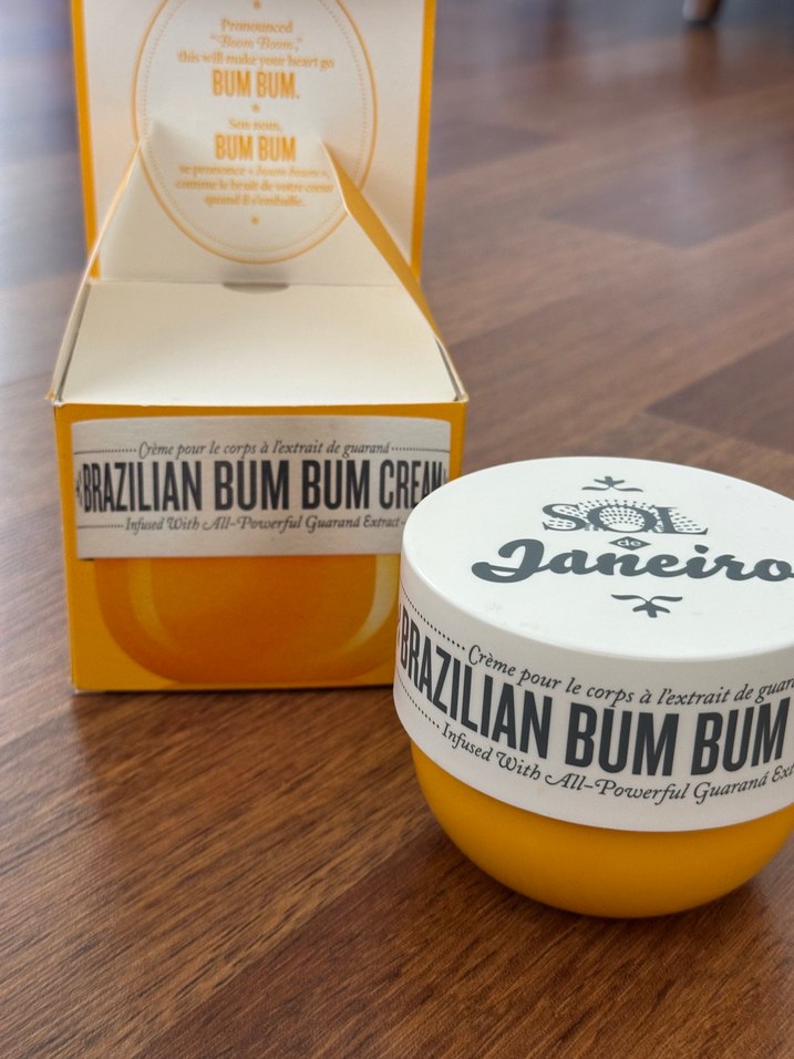 Yarısından fazlası duruyor. Duty freeden aldım.Güçlü guaraná özü ile zenginleştirilmiş Brazilian Bum Bum kremi, cildi nemlendirir ve pürüzsüzleştirir. Canlı sarı kavanozda sunulur.