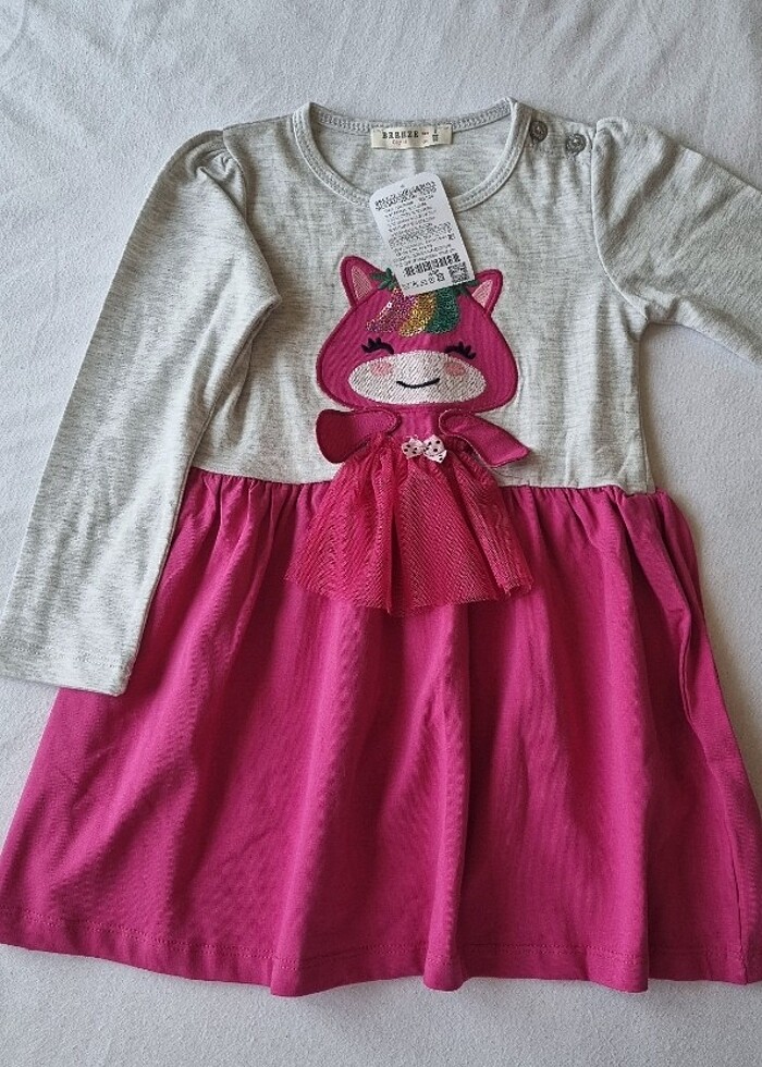 Breeze Girls Pullu Bakışlı Tüllü Pembe-Gri Kız Bebek Elbise. Yeni etiketi mevcut. 2 yaş.