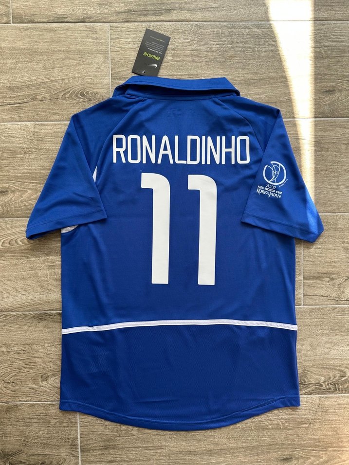 Brezilya 2002 Dünya Kupası Deplasman “Ronaldinho Gaucho” forması. Sıfır ve etiketlidir. Ürünün kolunda 2002 Dünya Kupası Patch mevcuttur. Sıfır poşetinde gönderim yapılacaktır. Müthiş bir koleksiyon ürünüdür. S - M - L - XL - XXL Bedenleri mevcuttur.