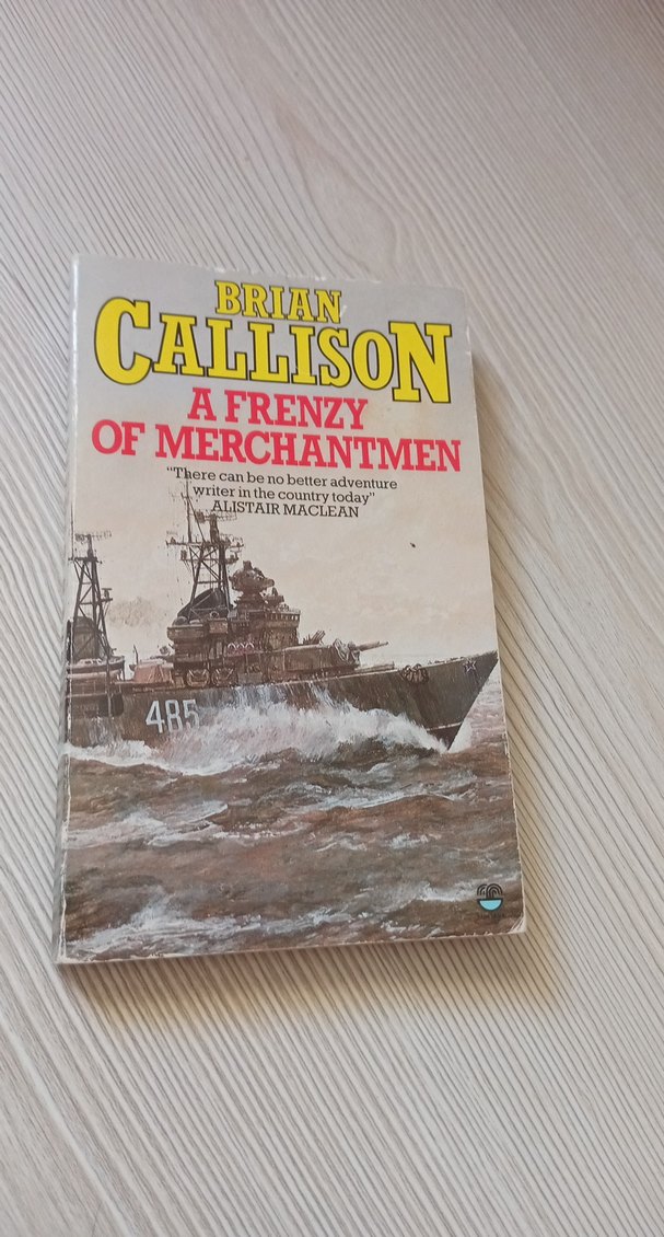 Brian Callison tarafından yazılan 'A Frenzy of Merchantmen' tarih kitabı, kapağında savaş gemisi görseliyle denizcilik ve ticaret gemilerinin maceralarını anlatıyor. ⚓