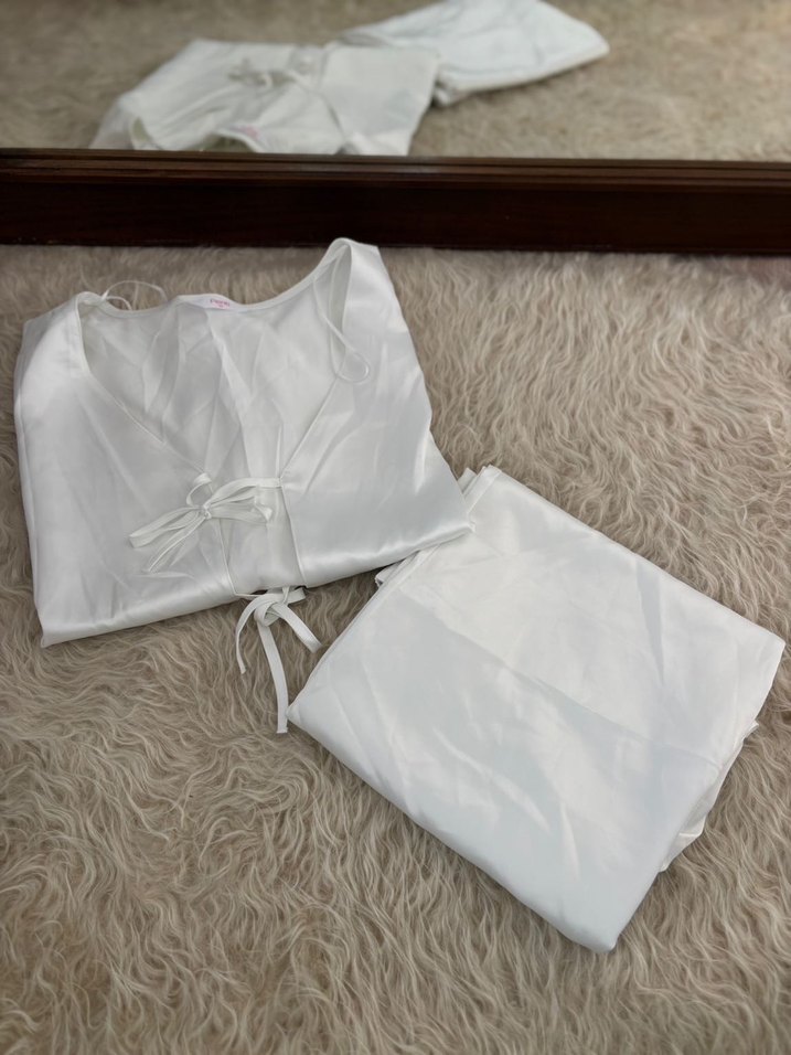 Bridal Saten Gömlek Pantolon Kırık Beyaz Pijama Takımı #penti #giyim #evgiyim #içgiyim #stil #tarz #trend