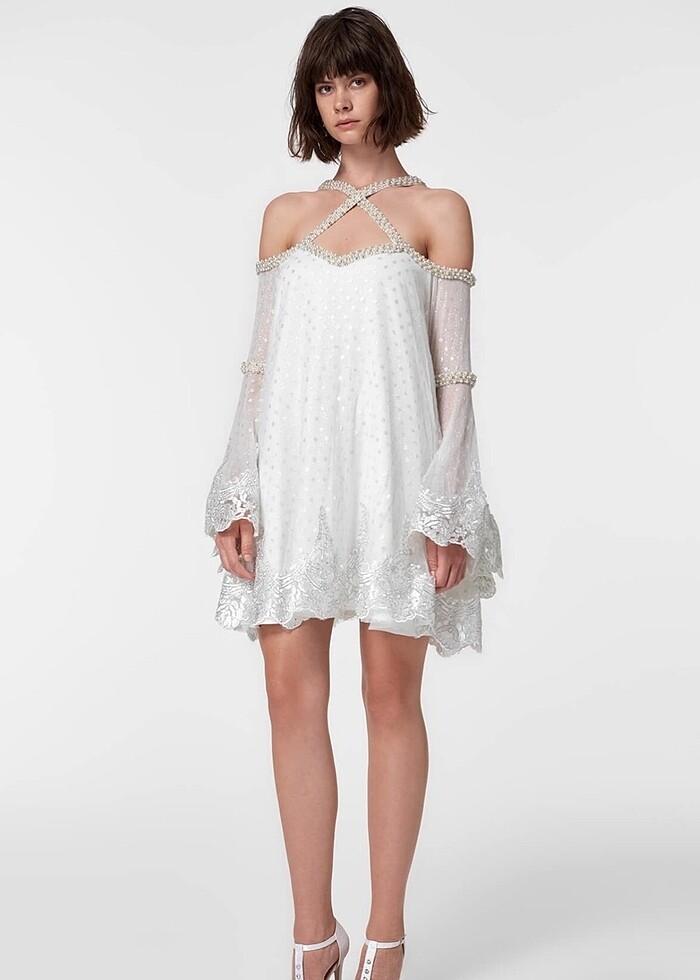 Tuvanam beyaz inci taşlı elbise