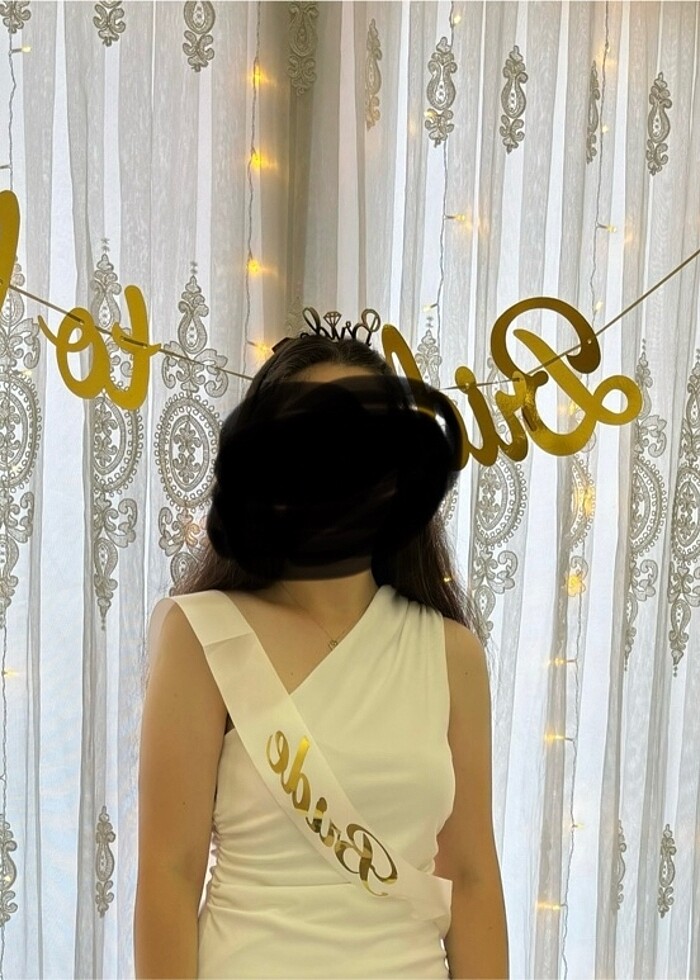 Bir kez kullanılmış temiz ürünlerdir. Taç, ön bride ve arkada asılı olan birde to be yazısı satılıktır
