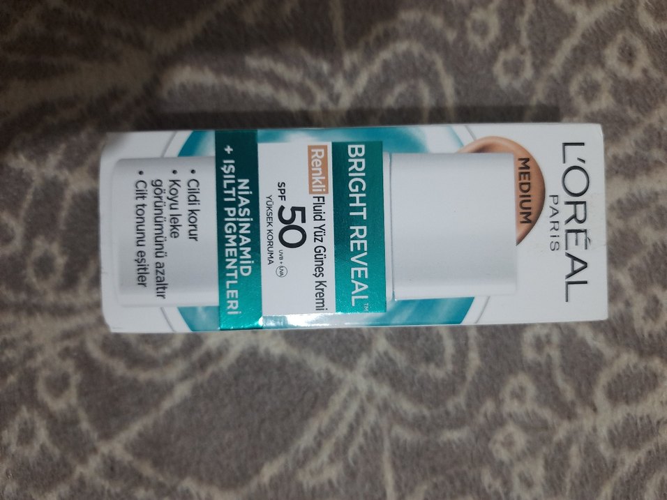 Bright Reveal renkli yüz güneş kremi SPF 50 ile cildi korur ve leke görünümünü azaltır. Niacinamide içerir.Hiç kullanılmadı.Almadan önce yazın lütfen