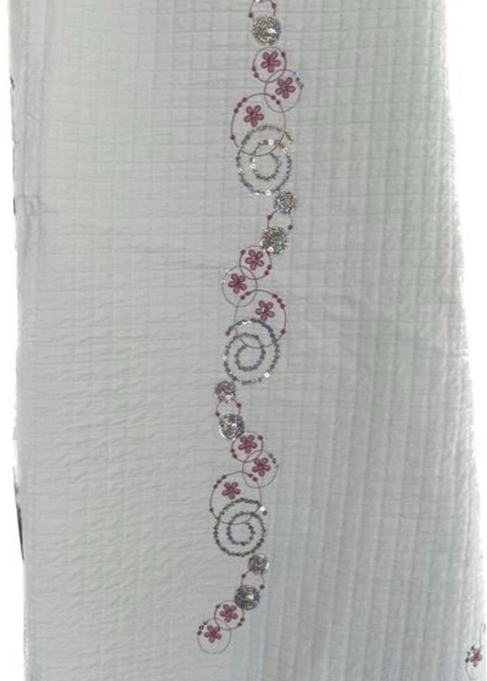 En: 1.60cm Boy: 2.20cm Petek desenli pul işlemeli . En son görselde minik bir kalem lekesi var çıkmadı yakından belli oluyor, hatta renginden ötürü örtünün deseni gibi duruyor:) onun dışında hiçbir sorunu yok. #yatakörtü #brilland #tekkişilik #tekkişilikyatakörtü