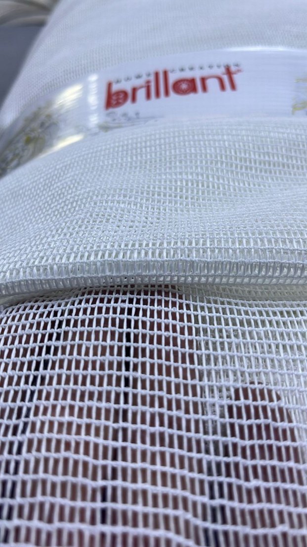 Beyaz renkte, hafif ve yumuşak dokulu modern tül perde. İnce file yapısı sayesinde doğal ışık geçirir ve gizlilik sağlar. Üzerinde "brillant" markası bulunur.