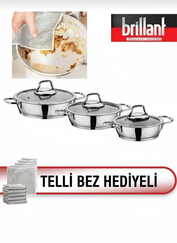 Brillant Gri Tencere Seti ve Telli Bez Hediyeli