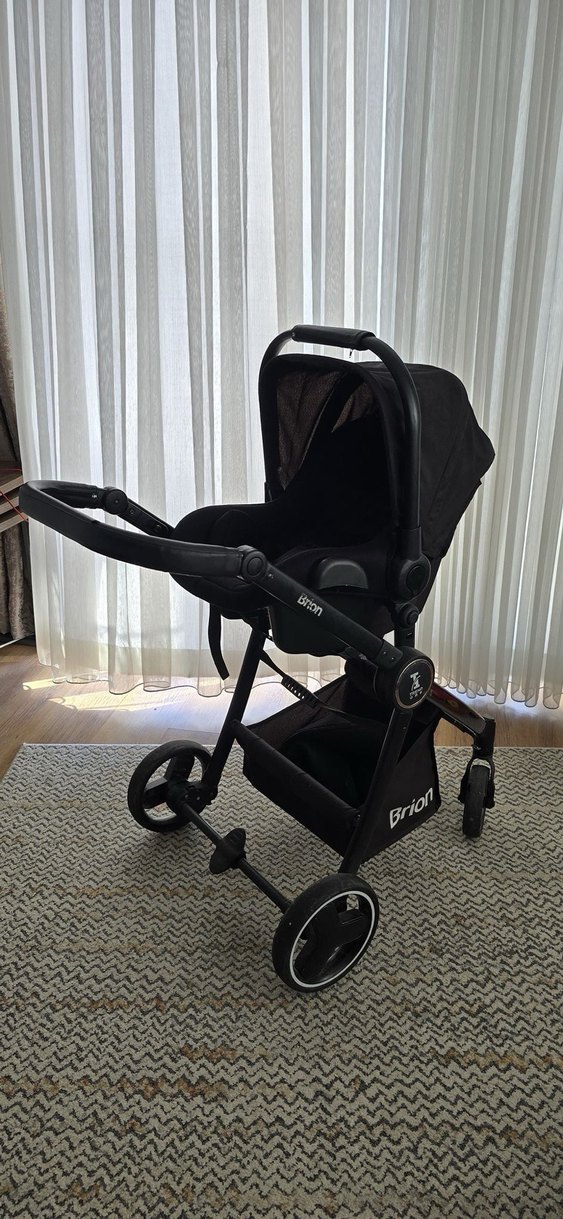 Travel sistem Çift yönlü tam yatış modu var ayarlanabilir her türlü yolda sürüşe müsait Brion siyah bebek arabası, dayanıklı iskelet ve koruyucu tente ile rahat oturma alanı sunar. Dört tekerlekli ve alt sepetlidir.