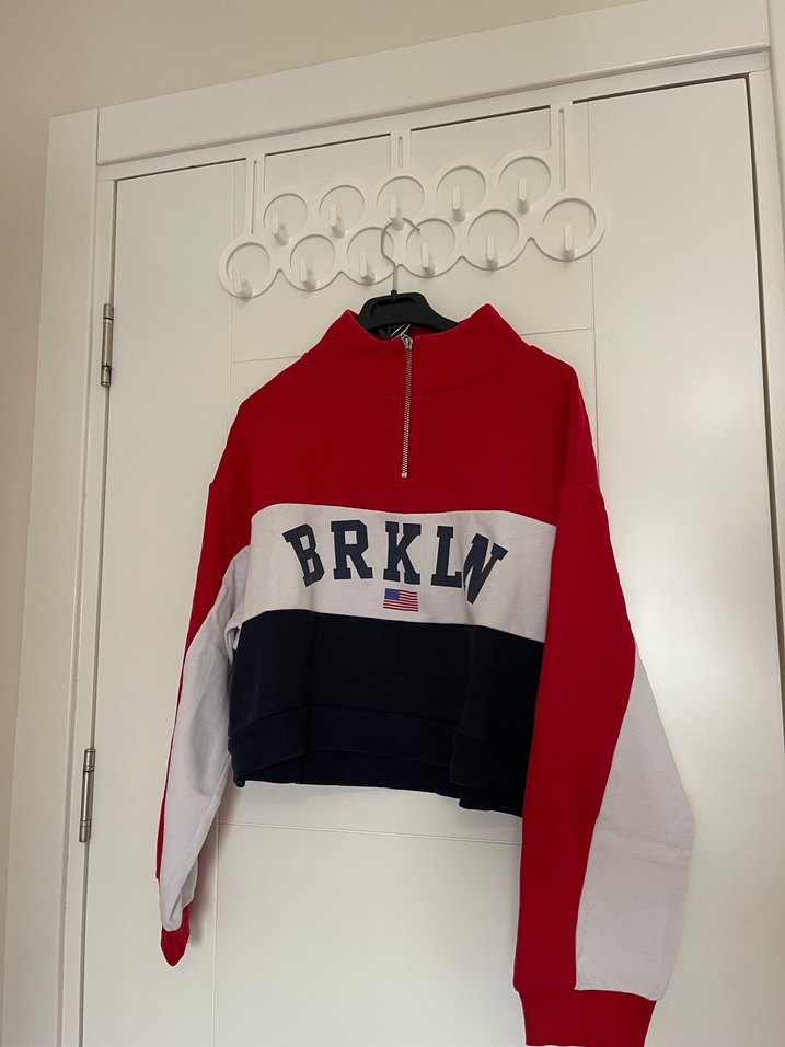 BRKLY baskılı, fermuarlı yüksek yakalı, uzun kollu kırmızı mini sweatshirt. Yumuşak ve sıcak dokusu ile sportif ve günlük tarzlara uygundur. ♀️